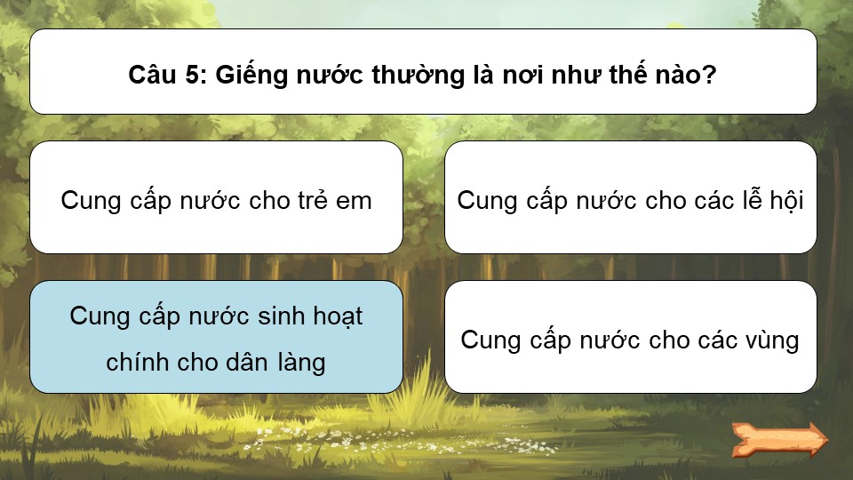 Luật chơi: Giáo viên chia cả lớp thành 2 đội chơi. Có 5 câu hỏi, hai đội sẽ nhấn chuông để giành quyền trả lời. Hết 5 câu hỏi, đội nào trả lời đúng nhiều hơn sẽ chiến thắng.