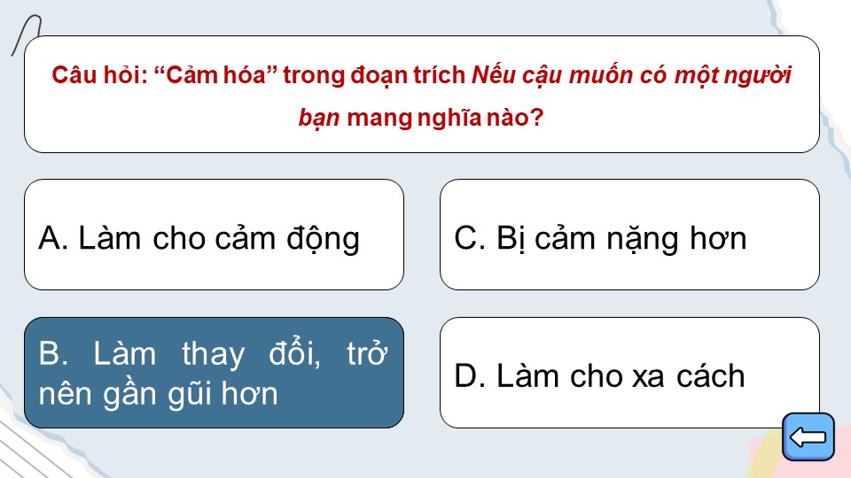 Game khởi động Ngữ văn 6 Kết nối Bài 1: Nếu cậu muốn có một người bạn...