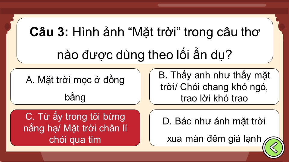 - Phân tích được hình ảnh “Mặt trời” trong câu thơ với biện pháp tu từ tương ứng.