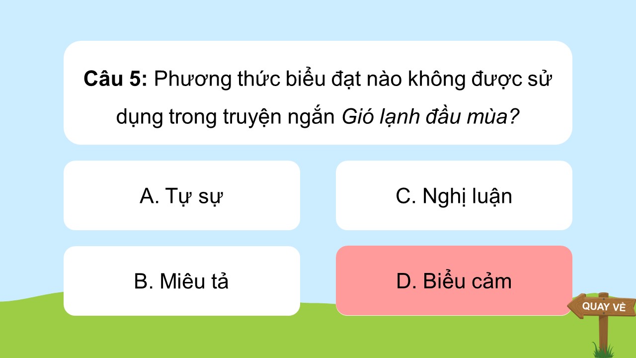 - Chọn phương thức biểu đạt không được sử dụng trong truyện ngắn Gió lạnh đầu mùa.
