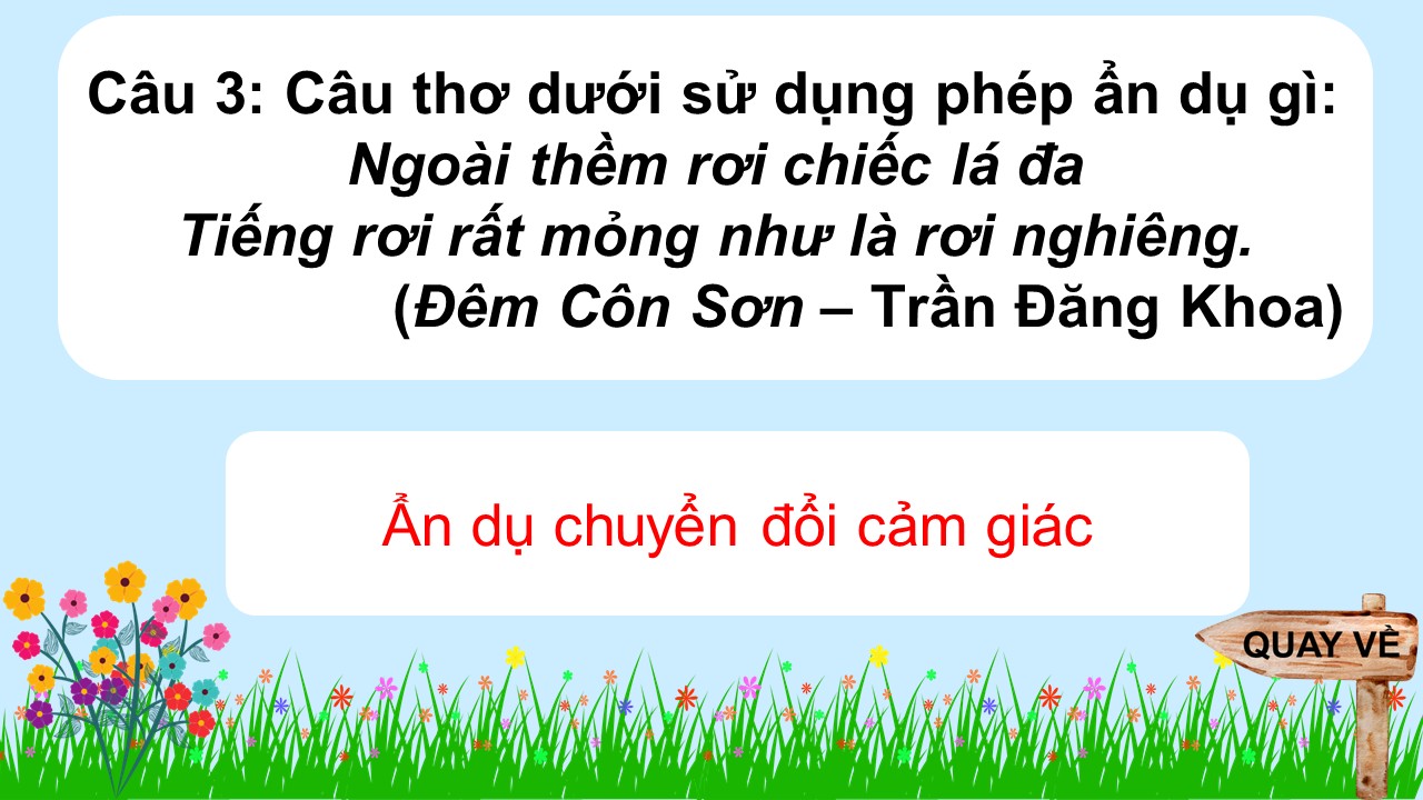 Luật chơi: Trò chơi gồm các cánh hoa cùng với câu hỏi trắc nghiệm 4 đáp án A, B, C, D. Học sinh lần lượt chọn một cánh hoa bất kỳ để mở câu hỏi bên trong. Sau khi đọc kỹ, các em chọn đáp án đúng nhất.