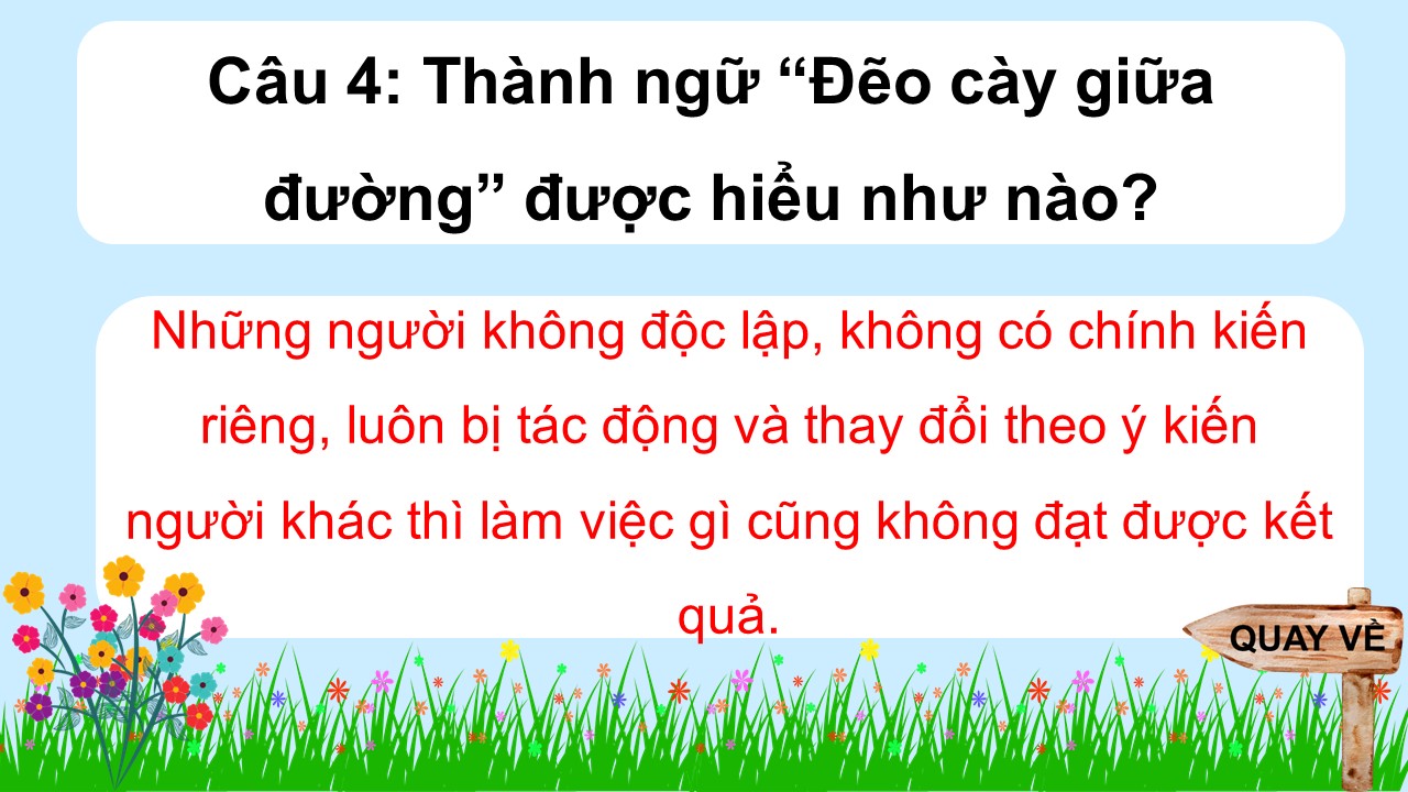 - Giải thích nghĩa của thành ngữ “Đẽo cày giữa đường”.