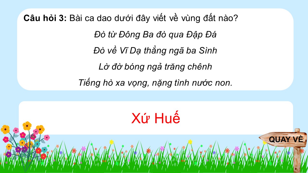 - Xác định vùng đất được nói đến trong bài ca dao cho sẵn.