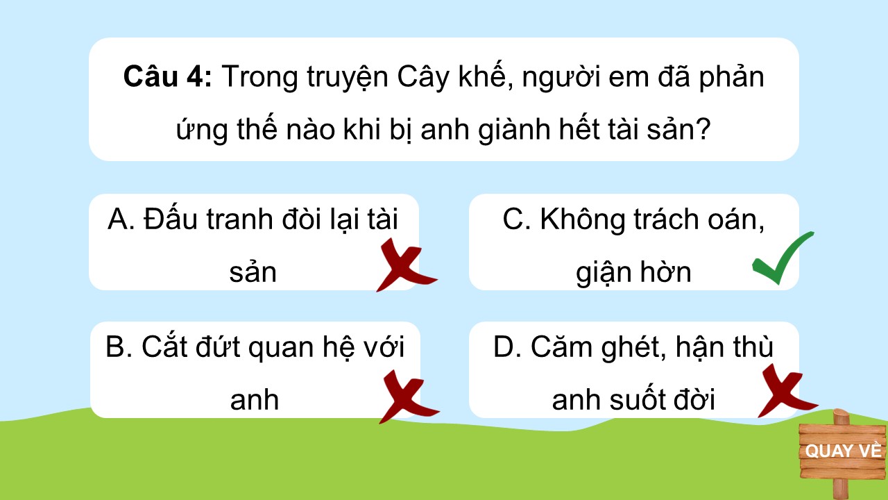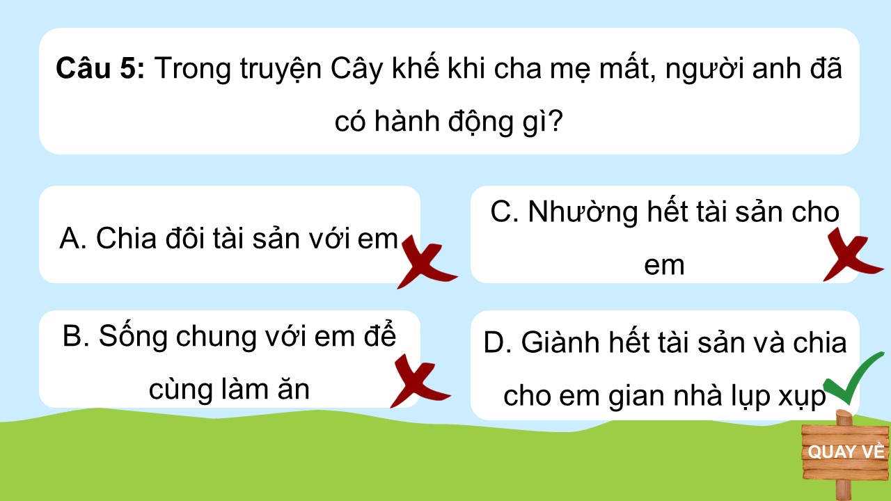- Nêu hành động của người anh sau khi cha mẹ mất trong truyện Cây khế.