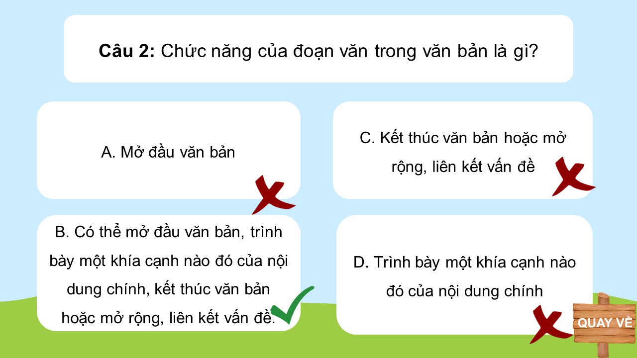 - Giải thích chức năng của đoạn văn trong văn bản.