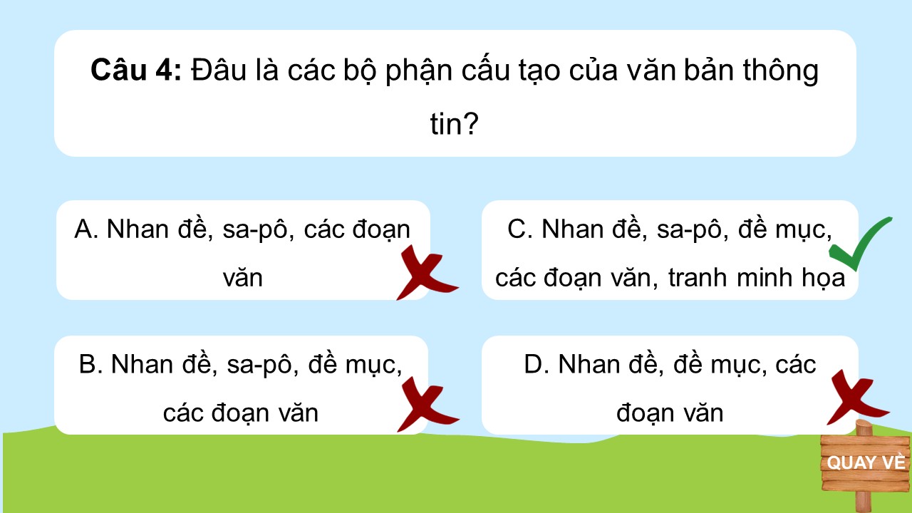 - Liệt kê các bộ phận cấu tạo của văn bản thông tin.