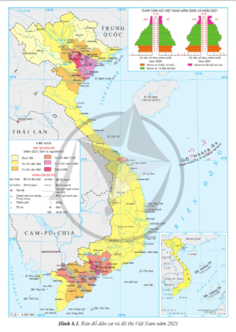 Câu hỏi: Dựa vào thông tin bài học và hình 6.1, hãy trình bày sự phân bố mạng lưới đô thị ở nước ta.