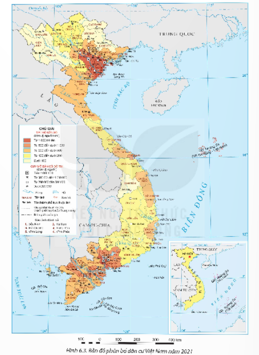 - Xác định một số tỉnh, thành phố có mật độ dân số dưới 100 người/km² và một số tỉnh, thành phố có mật độ dân số từ 1 000 người/km² trở lên (năm 2021)